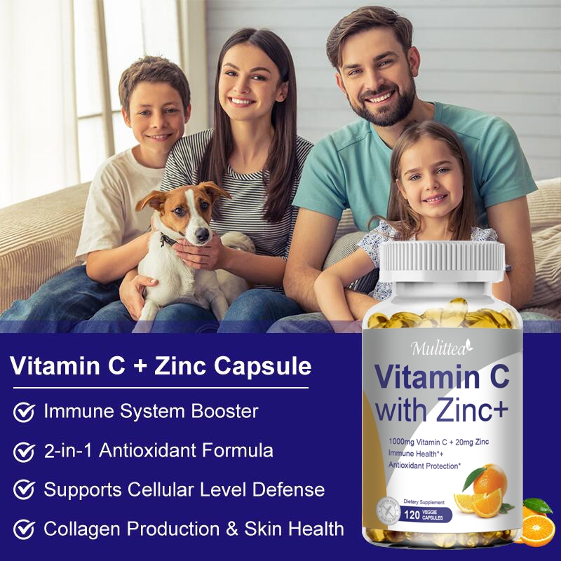 CICILAN TANPA DP Mulittea Vitamin C 1000mg dan Zinc 20mg untuk mendukung kekebalan tubuh, antioksidan kuat & produksi en