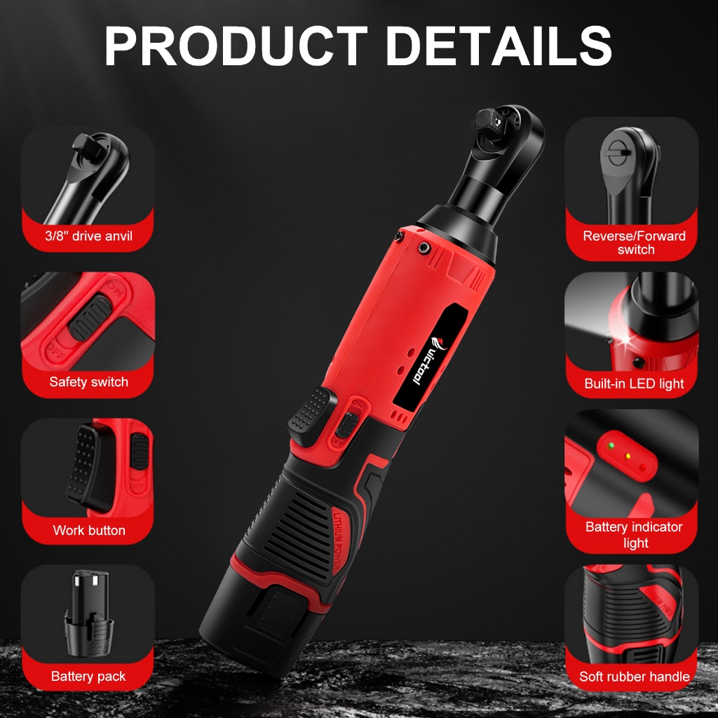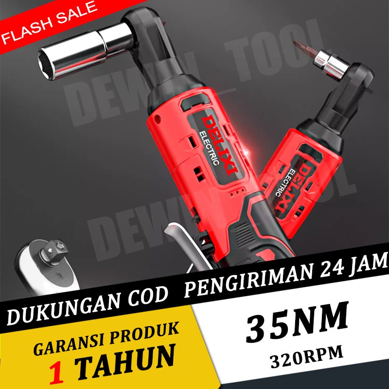 DEWIN kunci rachet set 3/8" Kunci Ratchet Daya 320RPM Alat Kunci Ratcheting Lampu LED