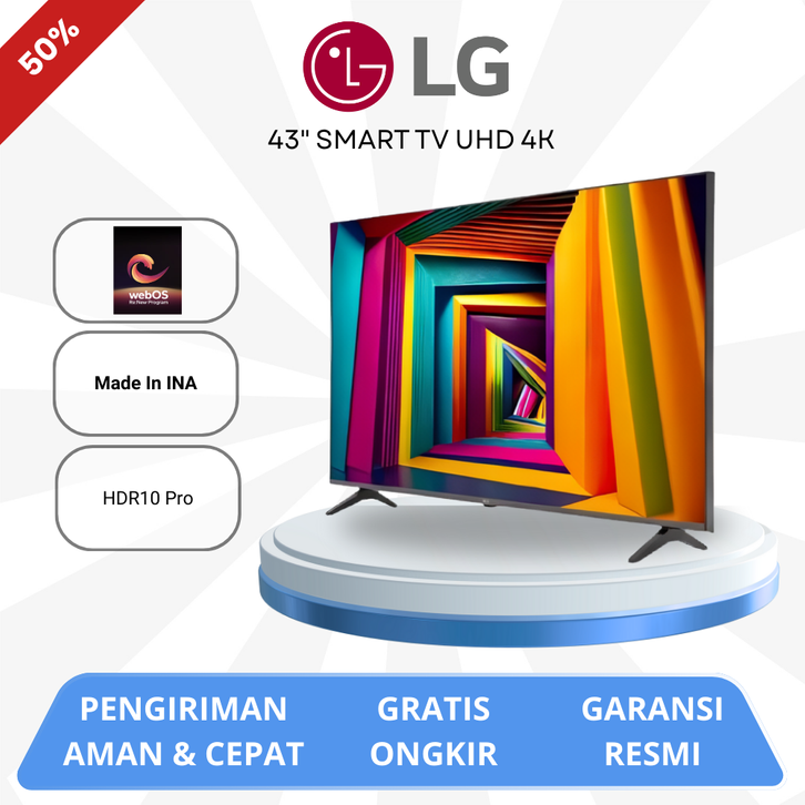 【TANPA DP】TV LG SMART 43 INCH UHD TELEVISI 4K 43UR7500ESE DIGITAL ANDROID GOOGLE TV WIFI 24 32 INCI GARANSI POLYTRON