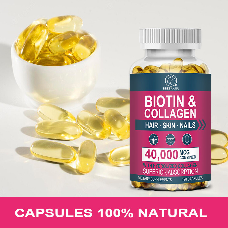 CICILAN TANPA DP BBEEAAUU Biotin Capsules with Collagen & Keratin Prevent White Hair Promote Hair Nails & Bones Growth E