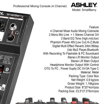 Mixer Audio ASHLEY 4 Channel SMALLBERRY Efek Reverb 99DSP Original