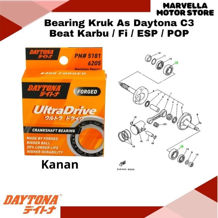 Laher Bearing Kruk As Daytona C3 Beat Karbu Beat ESP K44 Beat Fi KZL Beat POP