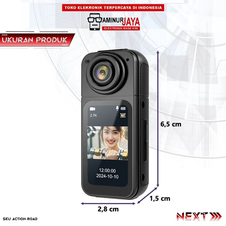 AminurJaya Mini Action Kamera WiFi 2.7K UHD 12MP 180° Rotasi Magnetik Spy Camera Roadcam ACTIONROAD