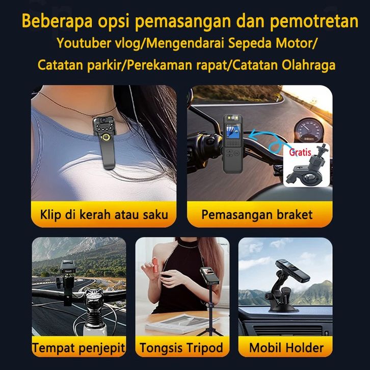 Yicsee action cam motovlog 1920P Kamera Dash cam untuk di Motor 360 Derajat Action Cam 4K ultra hd 60fps 600mAh baterai