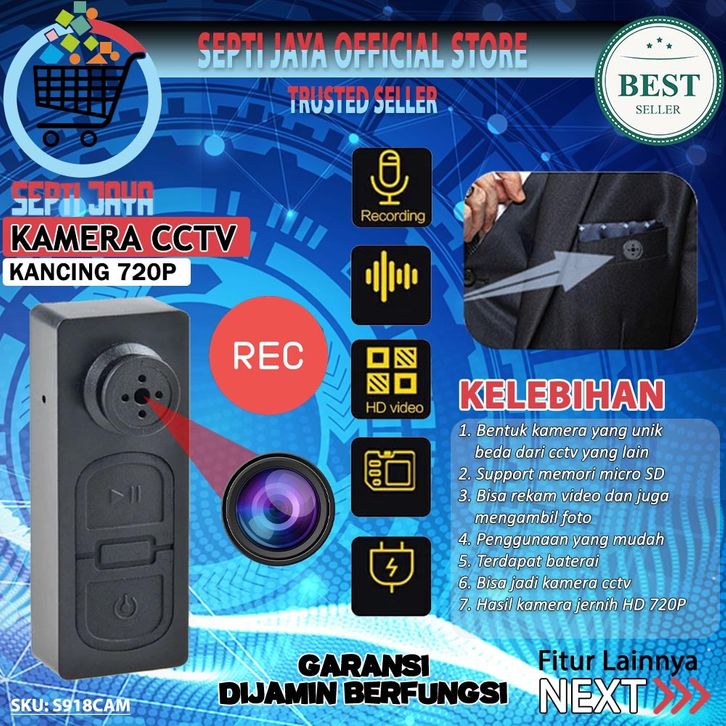 Spy Camera Mini DV DVR S918 Non Wifi Kamera Shirt Button Kancing Baju Hidden Spycam Camcorder Pengintai Pengawas Detek
