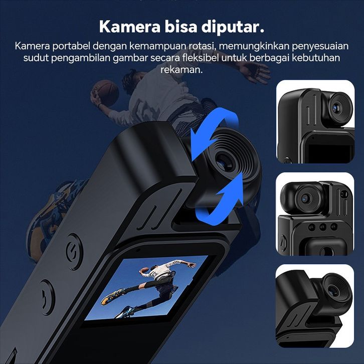 Manu Mini Kamera HD 1080P Camcorder Layar 1.3" Dapat Diputar 180° Portabel Clip-On Perekam Video Digital Recorder Infra