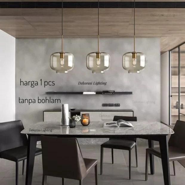 Lampu gantung kaca minimalis modern dekorasi ruang tamu cafe resto