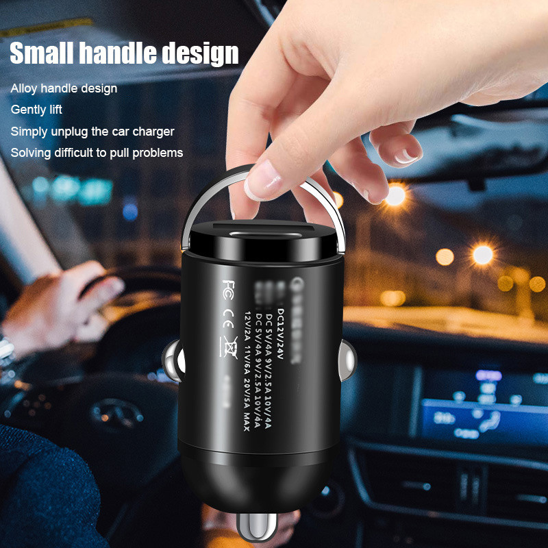 Car Charger Mobil 100W Quick Charger USB Type-C Dual Port 12-24V Charger Mobil Fast Charging