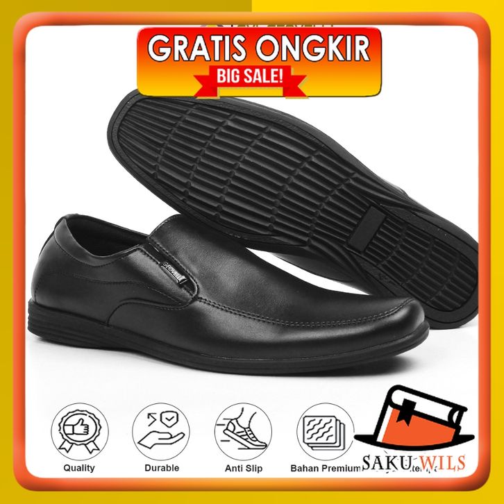 GVL Geovelli Garzas Sepatu Formal Pria Pantofel Hitam Kerja Kantor Kulit Pria