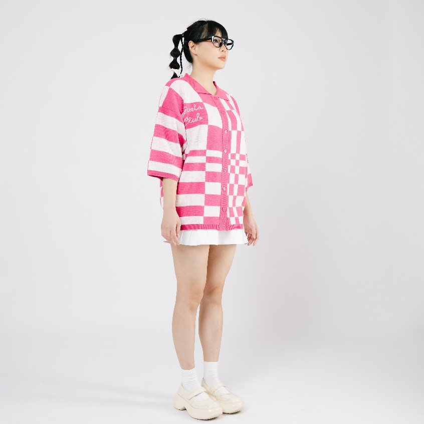 [Mall] GURLS CLUB OVERSIZED SHIRT KNITWEAR SWEATER - KNIZZLE PINK