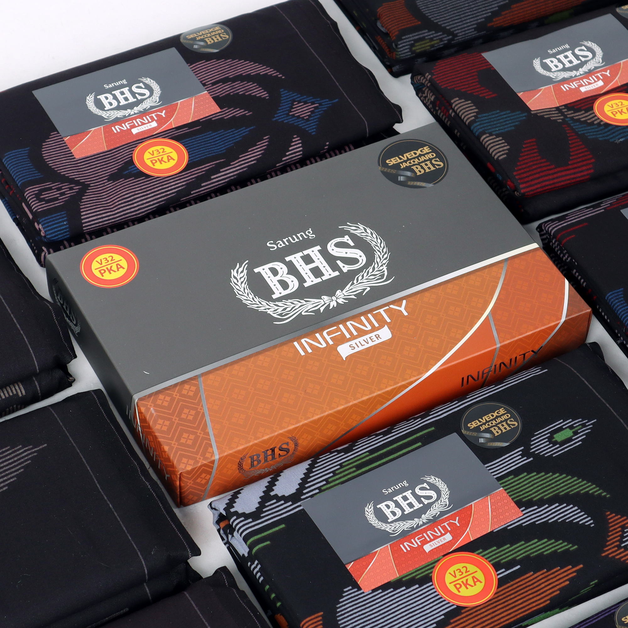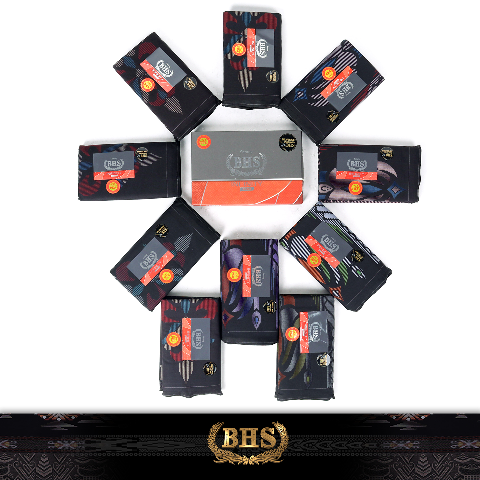 Grosir 10 Pcs Sarung BHS Infinity Silver Motif V32 PKA Black Series