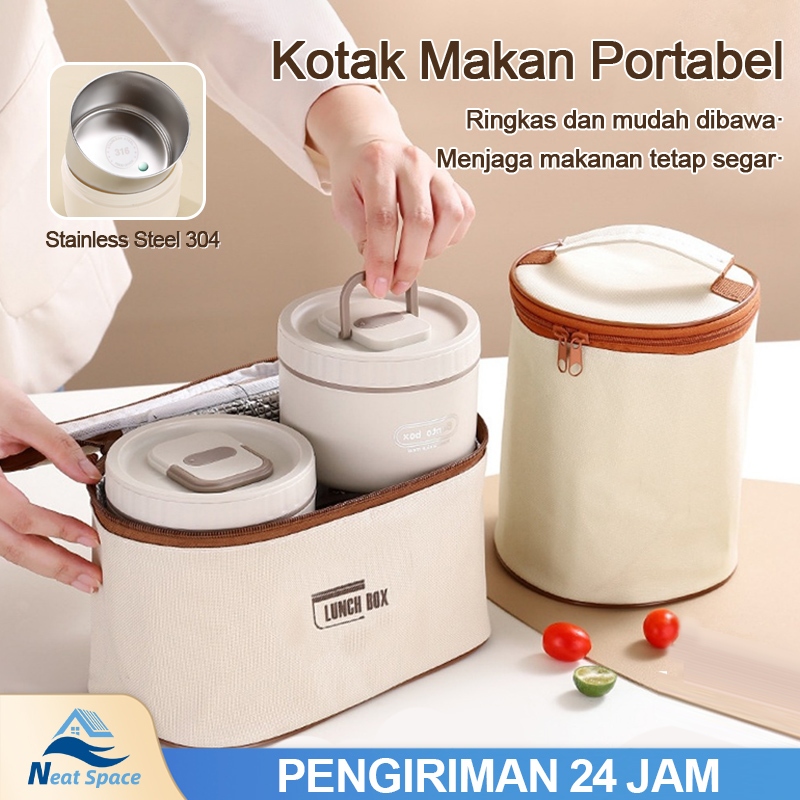【Neat Space】 1Set 304 Kotak Makan Siang Bento Portabel Tahan Bocor Gaya Jepang Round Kotak Makan Siang Terisolasi Portab