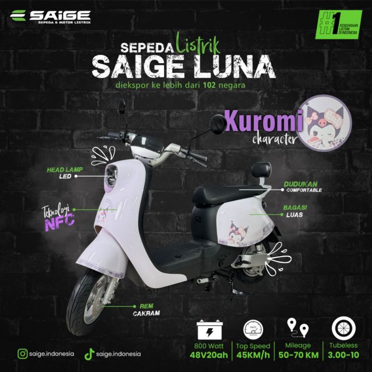 Promo Sepeda Listrik Terbaru Sae Luna 800Watt 48V /20Ah Resmi New