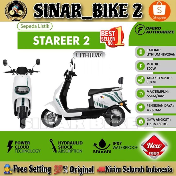 Promo Sepeda Listrik OFERO NEW STAREER 2 LITHIUM Battery Daya 800 Watt New