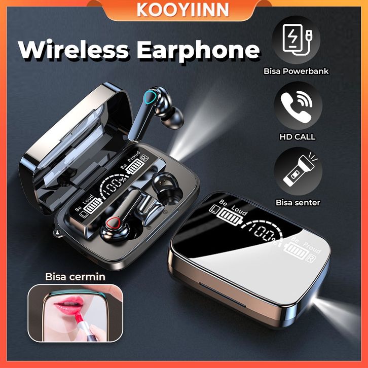 headset tws jbl wireless terlaris KOOYIINN Earphone Bluetooth 5.3 TWS Gaming 3in1 Flashlight LED Display Powerbank Cerm