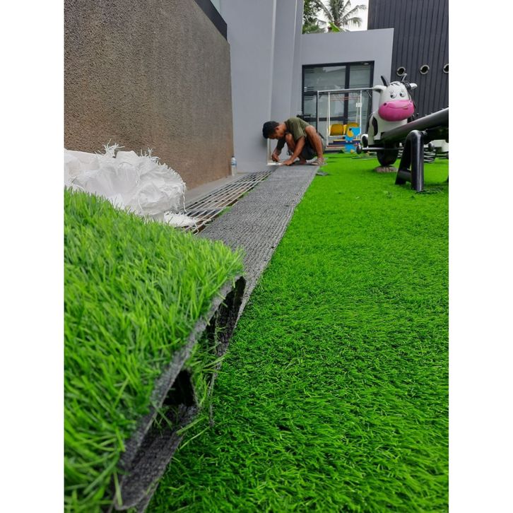 PROMO RUMPUT SINTETIS TIPE SWISS TEBAL 4 CM UKURAN 1,5 X 4 METER BERPORI TERLARIS UNTUK TAMAN
