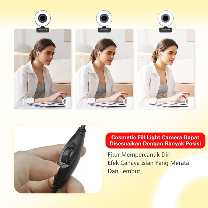 XIHANCAM Webcam Laptop 2K 4MP Ring Light USB Kamera Webcam PC Live Streaming With Mic Untuk Zoom