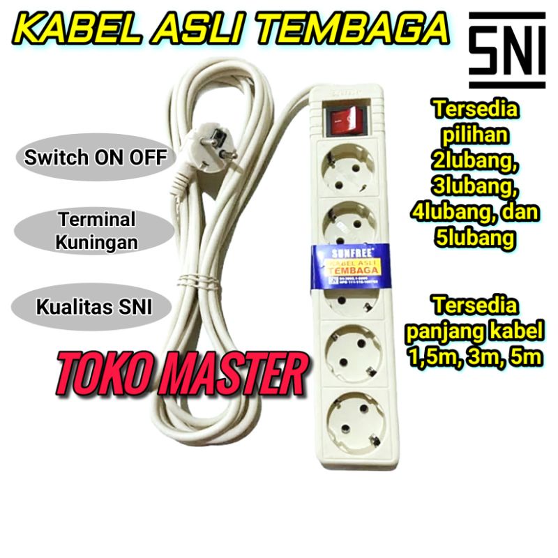 Stop Kontak Colokan Kabel Tembaga Kuningan SNI SUNFREE JUPITER 1,5 - 3 - 5METER 2 - 3 - 4 - 5 LUBANG