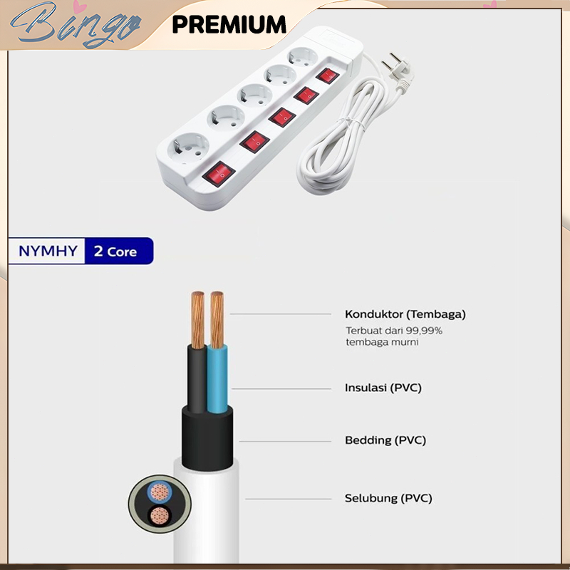 Stop Kontak Arde 3/ 4/ 5 Lubang Uticon SNI + Kabel Saklar ON OF SETIAP LUBANG SNI