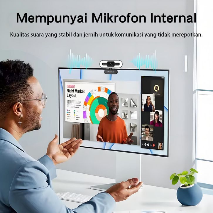 XIHANCAM 3Led Ring Light Webcam Laptop 1080P USB Kamera Webcam PC Live Streaming With Mic Untuk Zoom