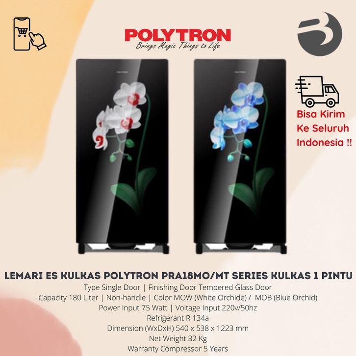 LEMARI ES KULKAS POLYTRON PRA18MO/MT SERIES KULKAS 1 PINTU POLYTRON