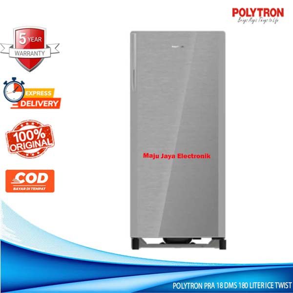 Kulkas 1 Pintu POLYTRON PRA 18 DMS GAGANG Glass Door 180 Liter Ice Twist