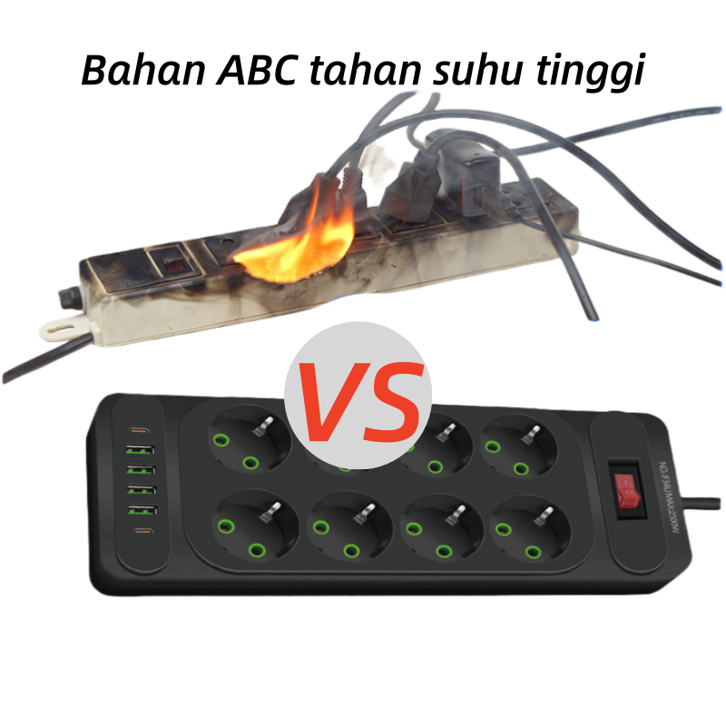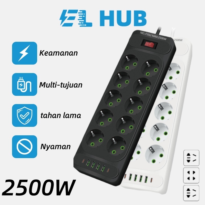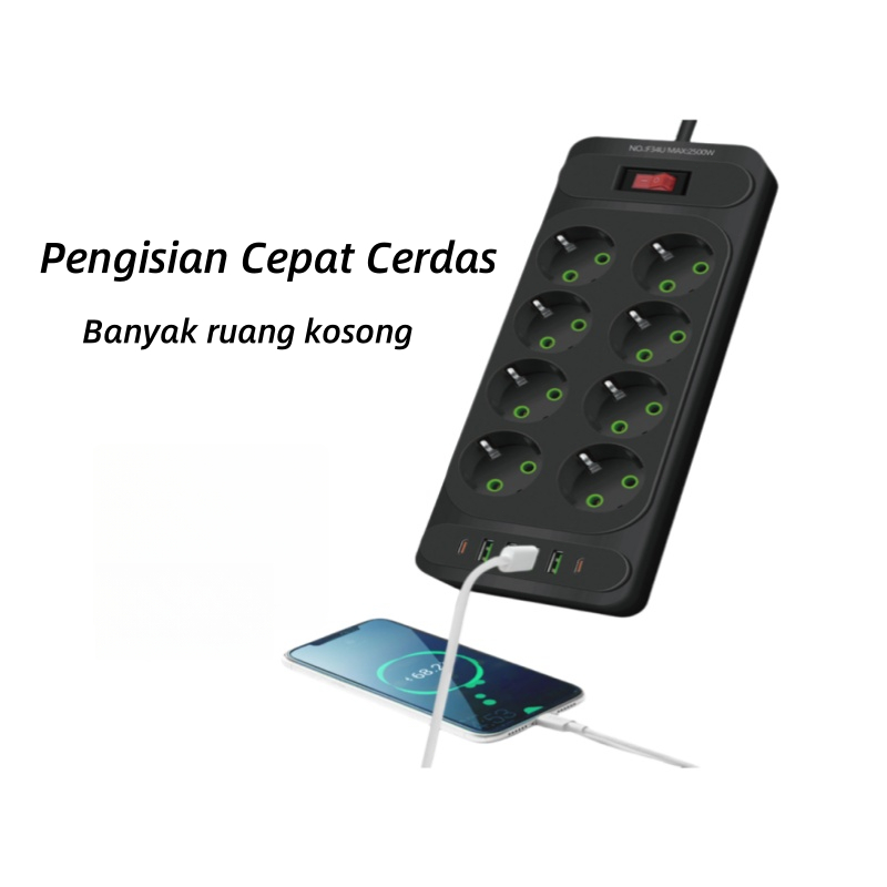 2500W Stop Kontak USB Kabel Serbaguna Multiguna Panjang 2 Meter Original Power Socket Sakelar Independen dengan Power Socket 4 Port USB 10 Port Stop Kontak 2 Type C Port