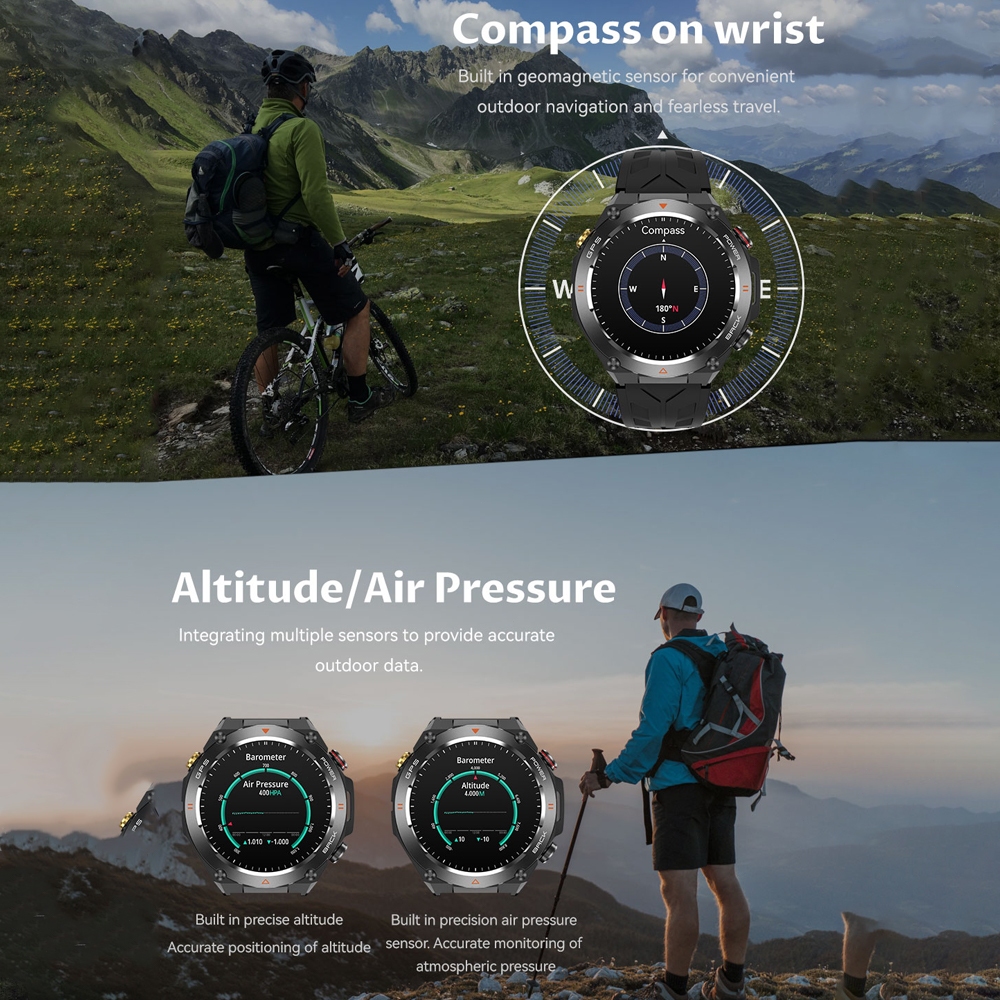 GPS Map SmartWatch KC82 1.45 Amoled 5ATM Dapat Digunakan untuk Berenang Kompas 100+ Mode Olahraga Compass Bluetooth