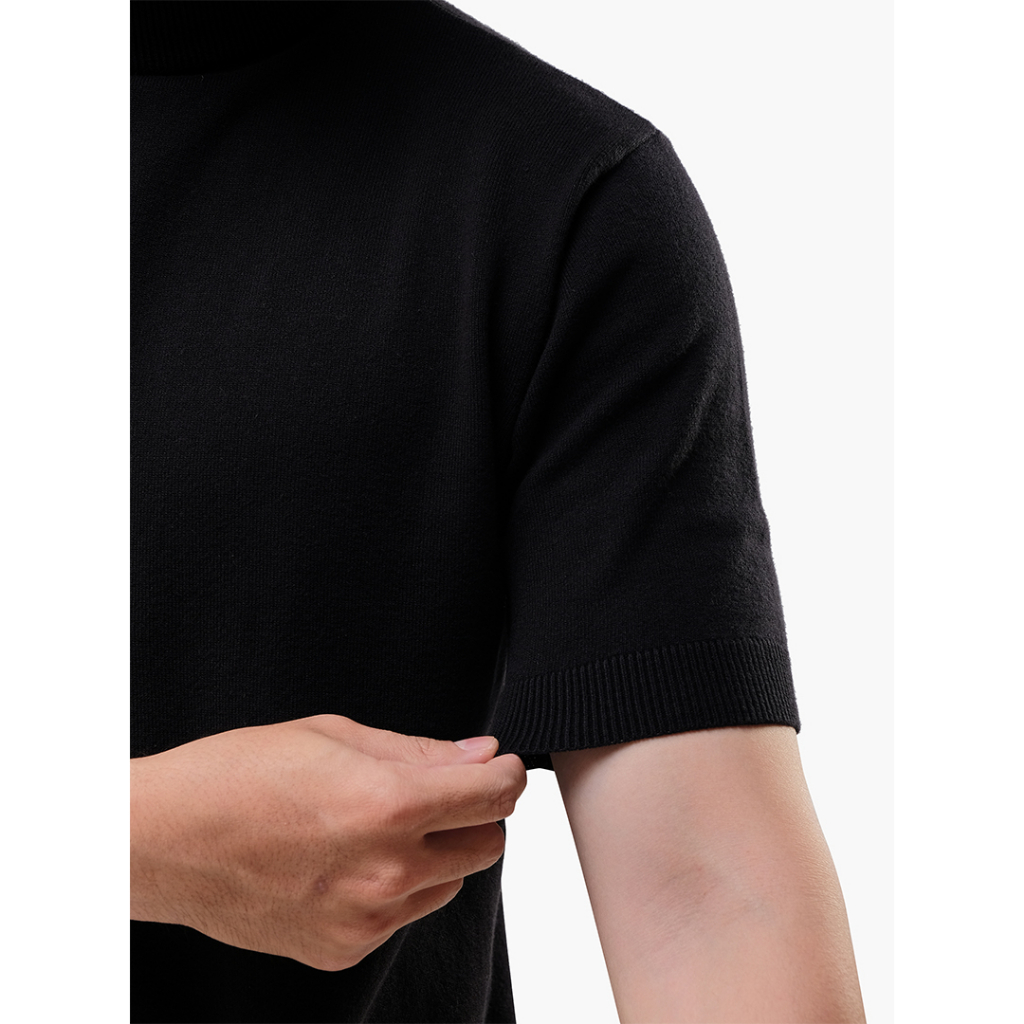 Gomuda Sweater Rajut Pria Mockneck Short Sleeve Knitwear