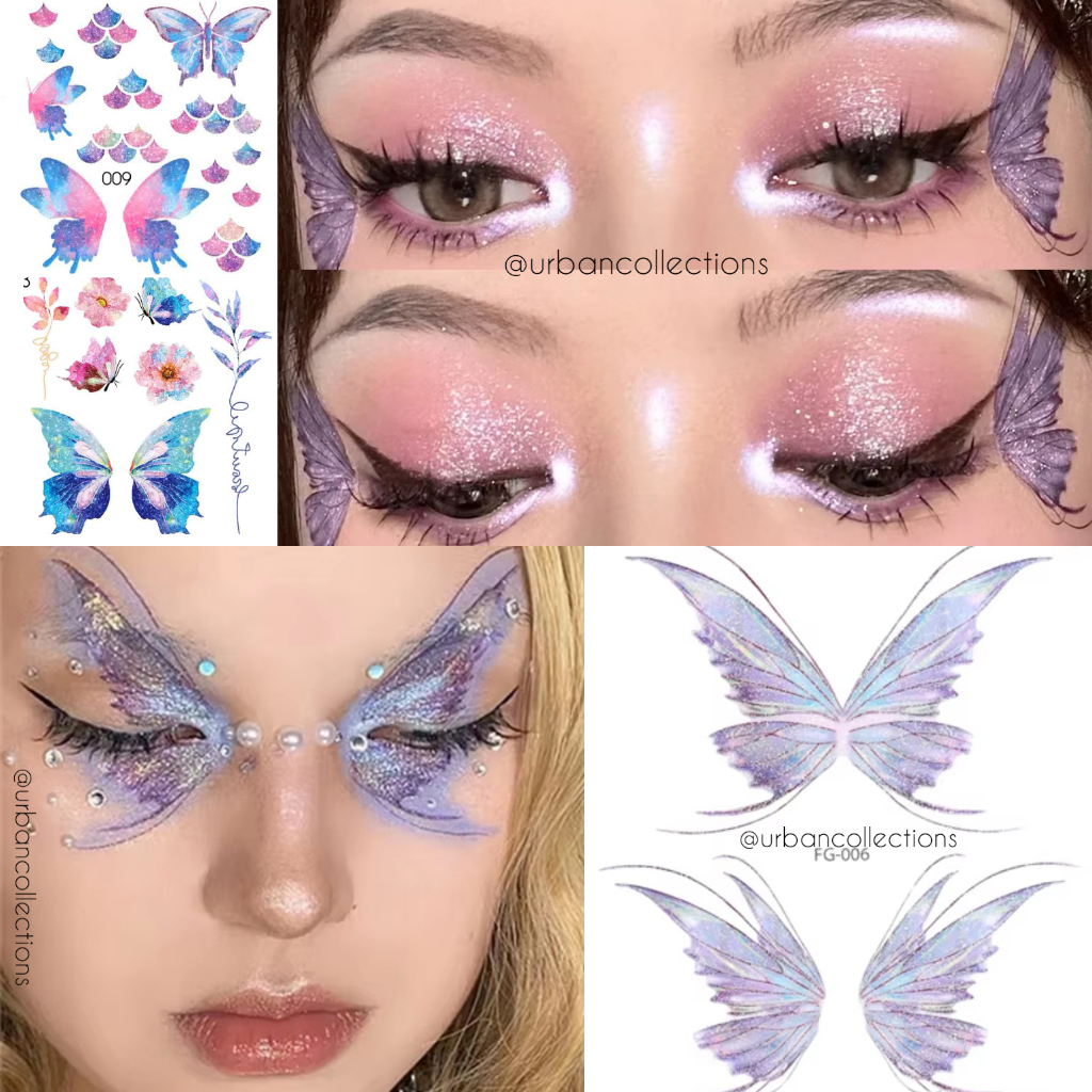 Butterfly Tattoo Temporary Tattoo Sticker Tato Kupu Kupu Sticker Wajah Kupu Kupu Glitter Sticker Wajah Konser Sticker Festival Pernak Pernik Konser Riasan Wajah Kupu Kupu Tato Temporer Sticker Tattoo