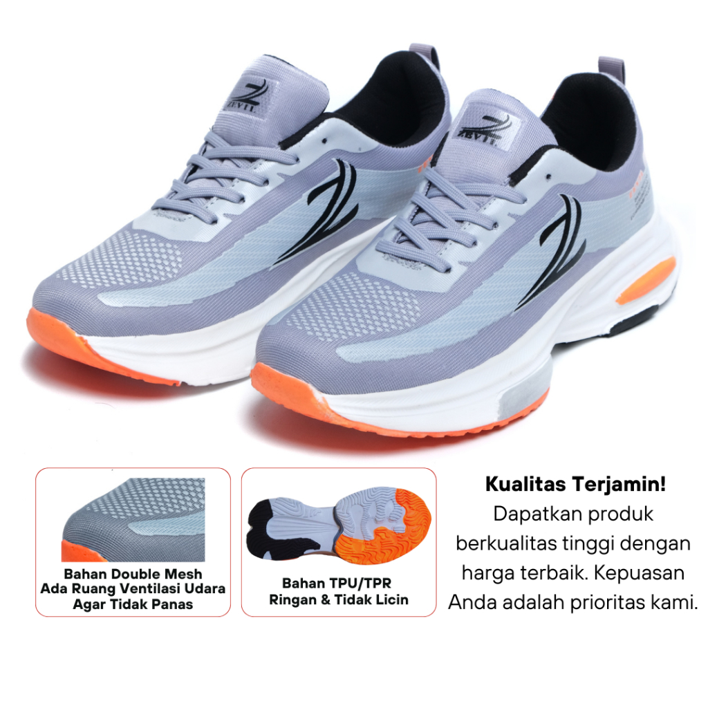 ZEVIL EST - Sepatu Olahraga Pria Sneaker Lari Sport Men Running Jogging Abu oren 38-44