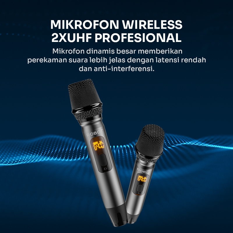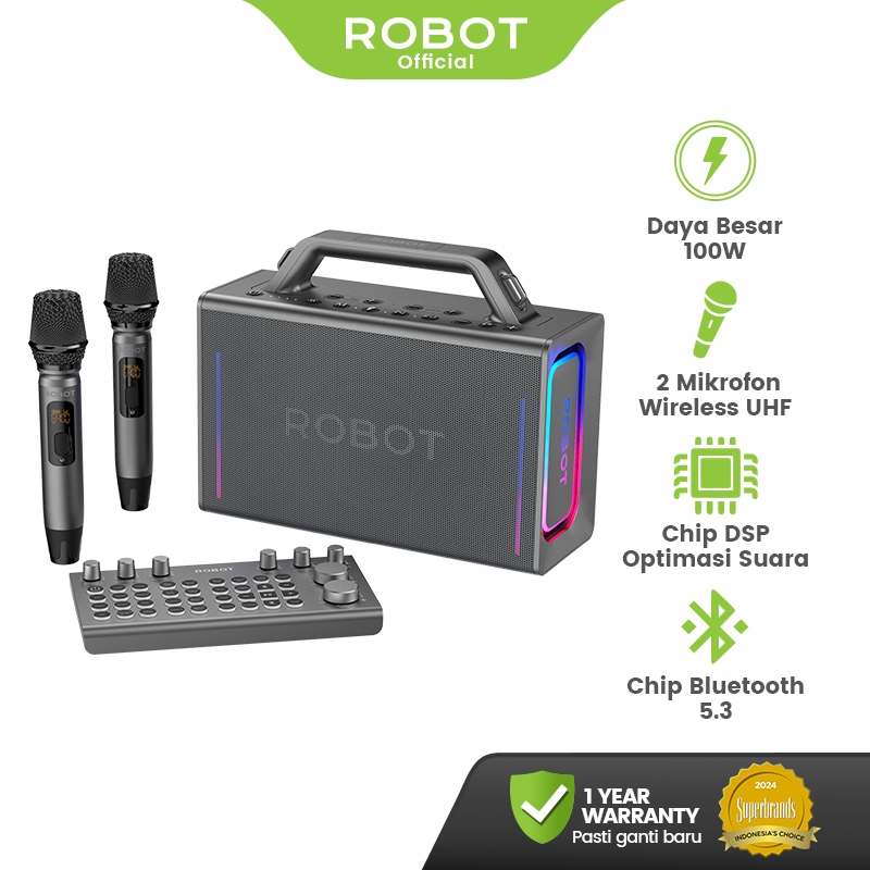 ROBOT Speaker Karaoke Outdoor RGB IPX6 100W Powerfull Bass with 2 Microphone Wireless UHF Bluetooth 5.3 Chip DSP Speaker