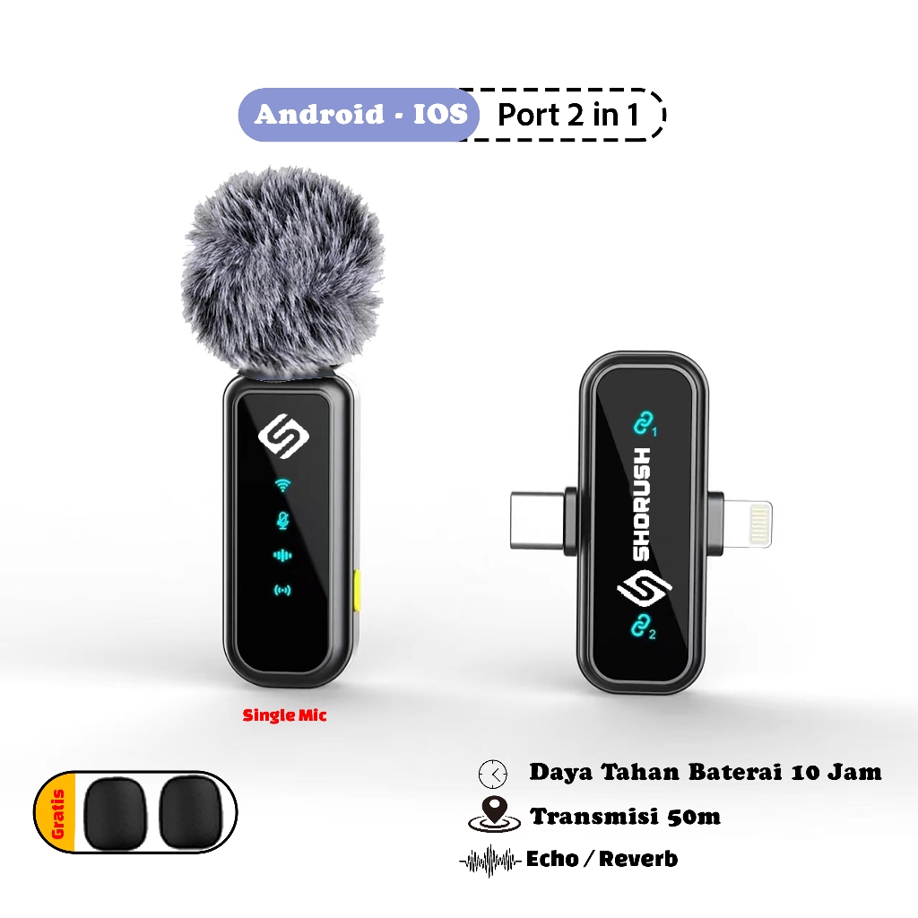 Shorush N1 2 In 1 Single Dual Wireless Microphone Clip On Mic Portable Android Iphone Microphone Mikrofon Lavalier HP Un