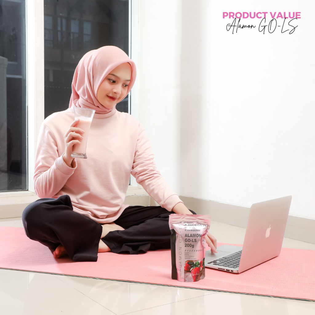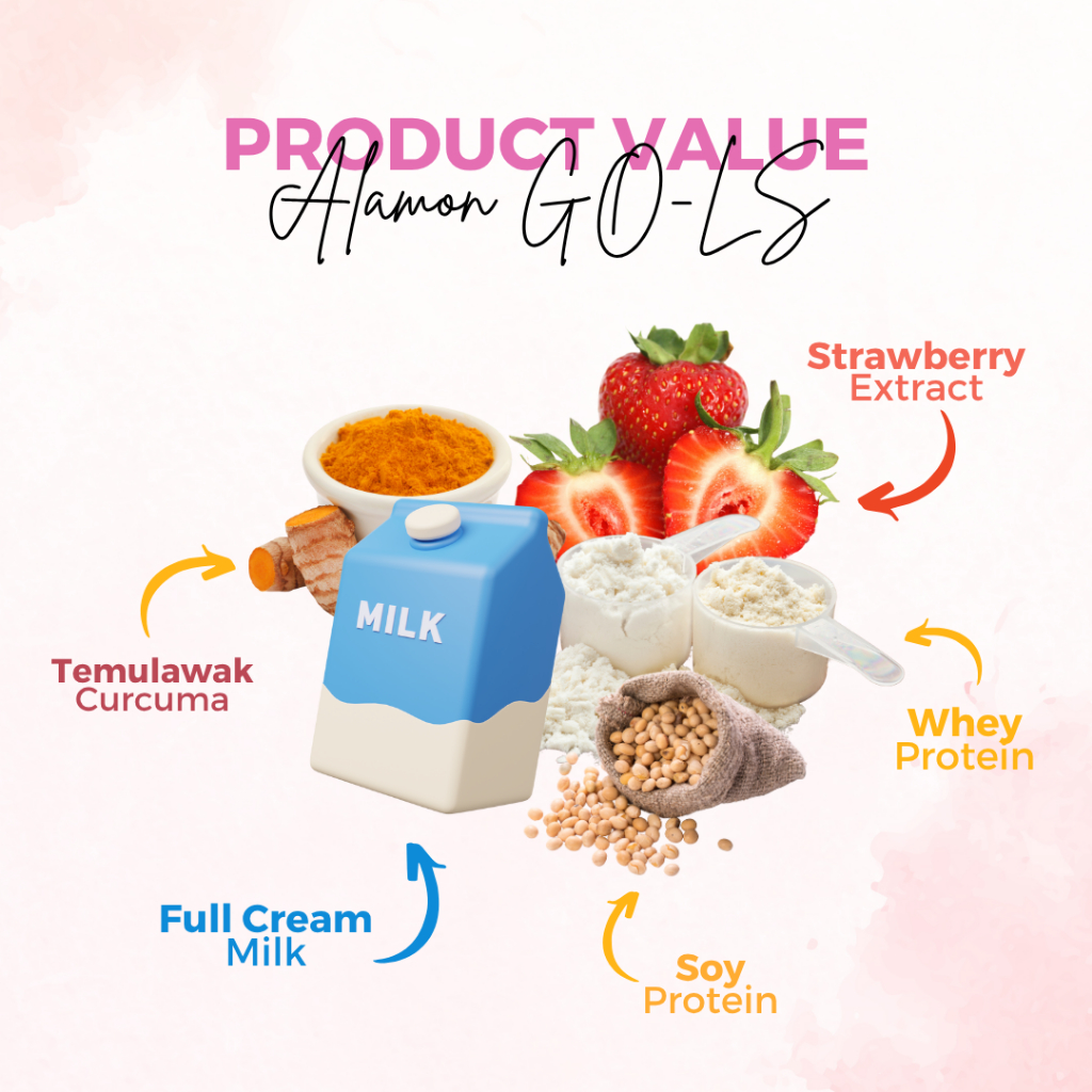 Susu Penambah Berat Badan / Alamon GO-LS / Less Sugar / Whey, Strawberry Extract, Malt, Full Cream Milk