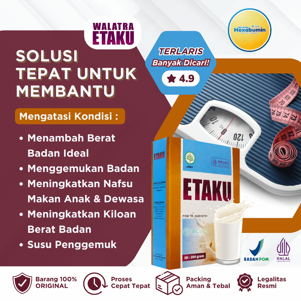 Susu Penambah Berat Badan - Penggemuk Badan - Badan Berisi - Kiloan Naik - Nafsu Makan Naik - Etaku