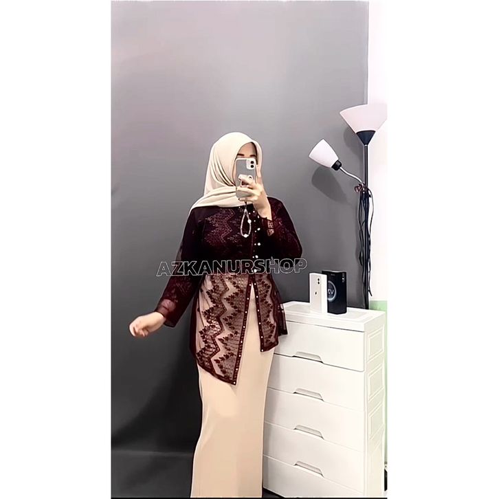Milly Outer Brokat Full Mutiara Atasan Kebaya Wisuda Outfit Baju Kondagan Wanita Simple Elegan Terbaru Kekinian