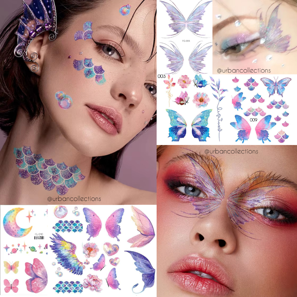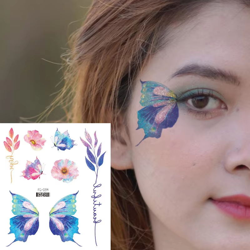 Butterfly Tattoo Temporary Tattoo Sticker Tato Kupu Kupu Sticker Wajah Kupu Kupu Glitter Sticker Wajah Konser Sticker Festival Pernak Pernik Konser Riasan Wajah Kupu Kupu Tato Temporer Sticker Tattoo