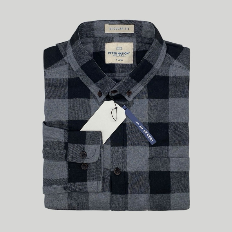 Peternation kemeja flanel pria wool basic panjang regular fit