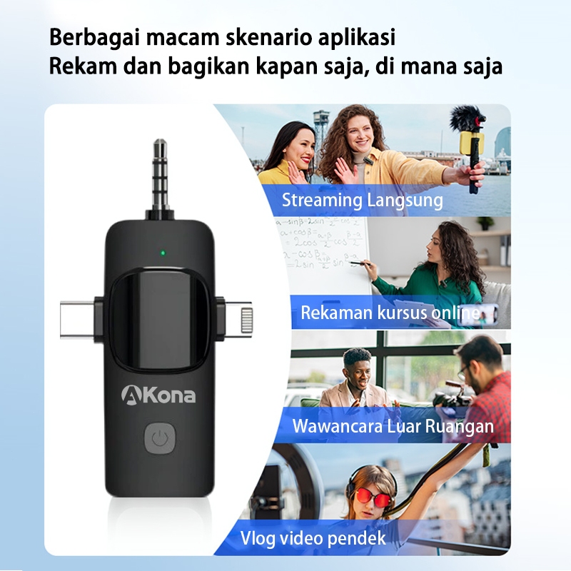 Akona 3 IN 1 Mic Wireless Clip On 2 Microphone Wireless Clip On Noise Reduction Mikrofon Konten Kreator 3.5MM Type-c Lig