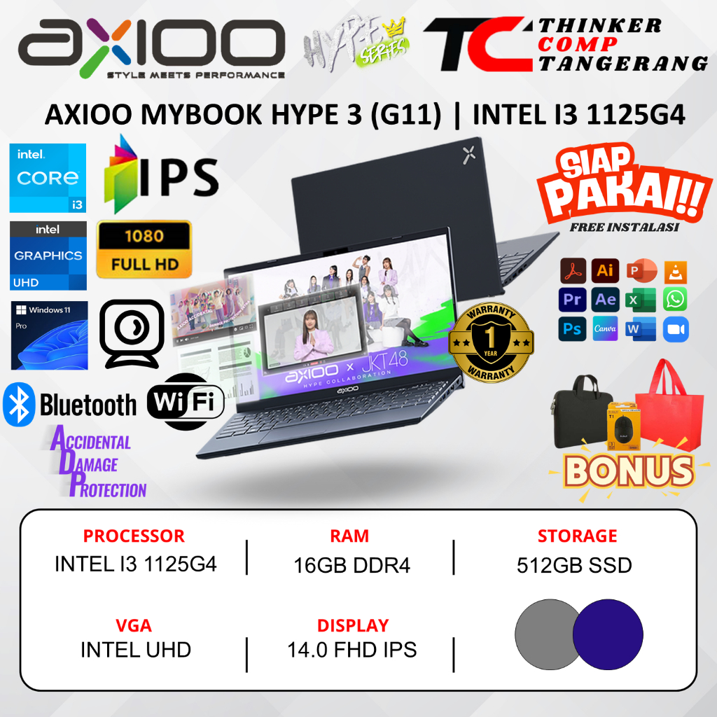 Laptop Kantor Axioo Hype 3 Gen 11 Intel Core i3 1125G4 Ram 16GB 512GB SSD 14 Inch Full HD Windows 11