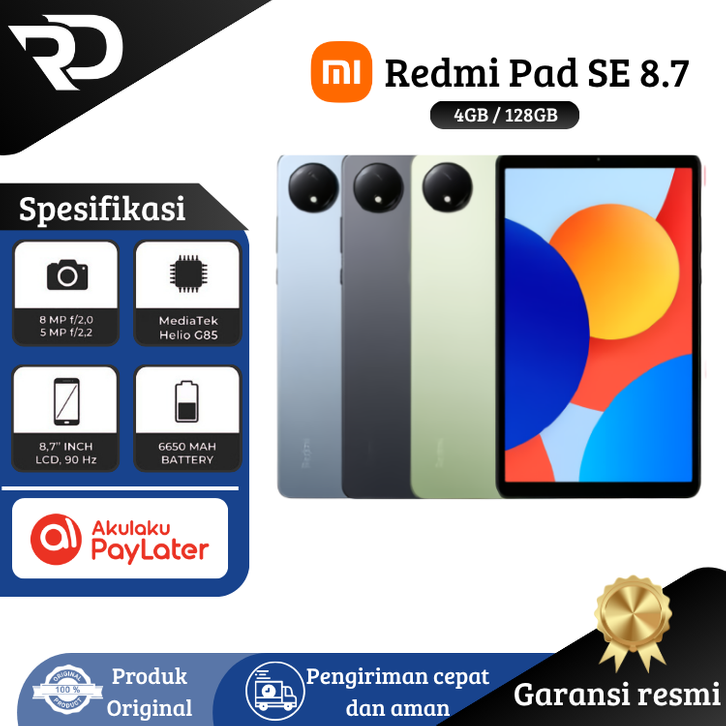 Xiaomi Redmi Pad SE 8.7 4/128GB Layar 8.7 inches Baterai 6650mAh - Resmi Indonesia Tablet Murah Redmi Pad 2