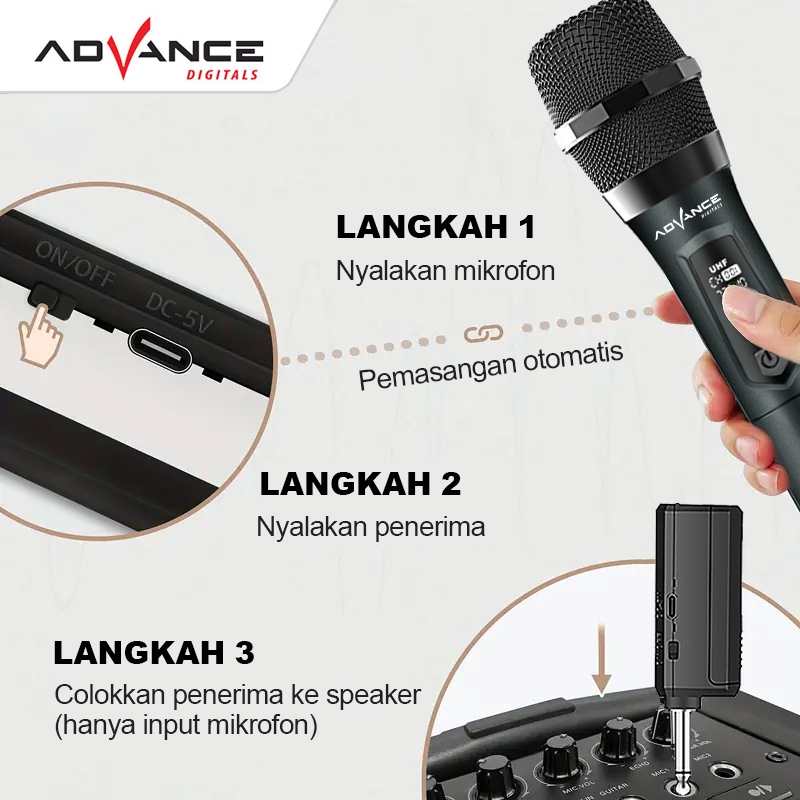 Advance Double Mic Karaoke Wireless Microphone Suara Jernih BONUS Baterai Cas 3 Pcs