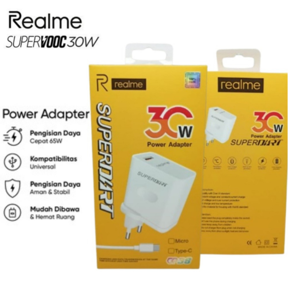 Charger Casan Realme Fast Charging 30W Supervooc Power Adapter Micro USB & Type C Superdart Charging Original