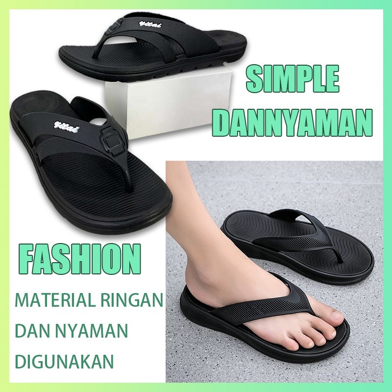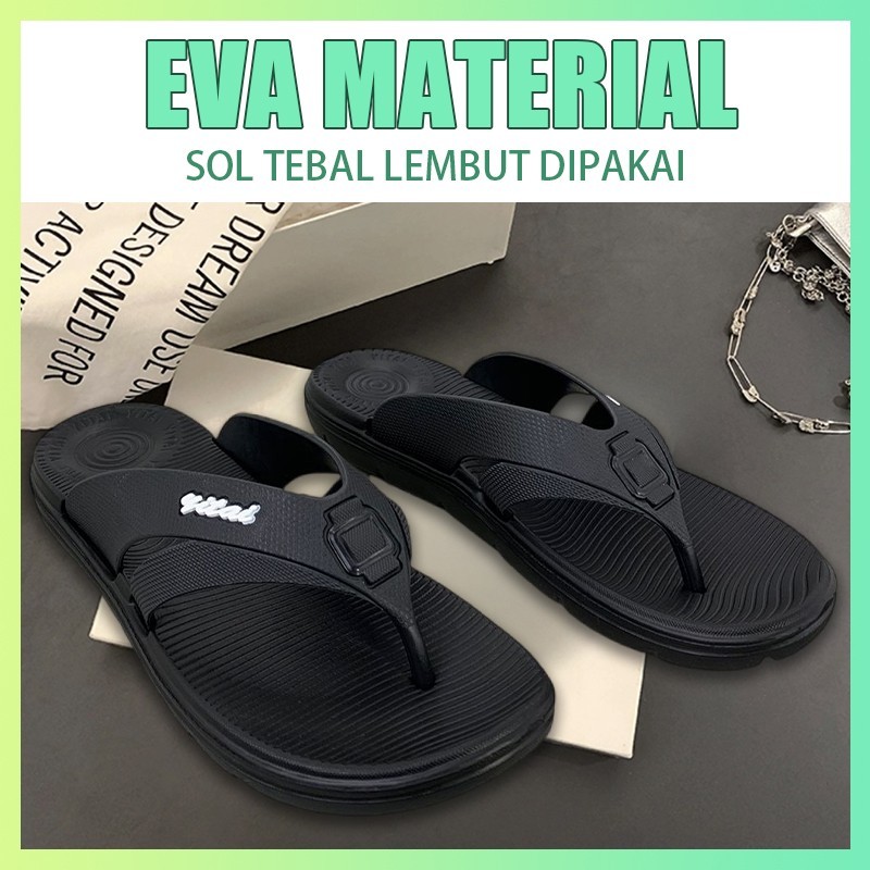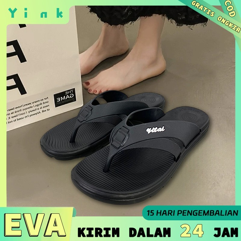 Yink Sandal Jepit Karet Wanita Motif Terbaru Empuk EVA Premium Sendal Slop Wanita Hitam Casual Platform Dewasa