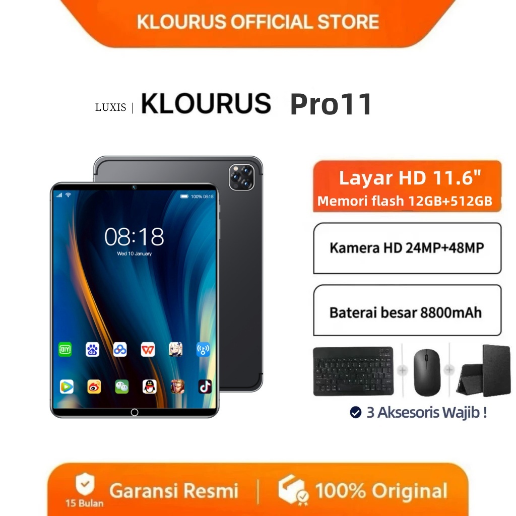 【Free Mouse Keyboard 】KLOURUS Tablet Pro11(12GB + 512GB) | IPS 11.6" | Tablet Murah untuk Belajar,Gaming, Kerja & Hibu