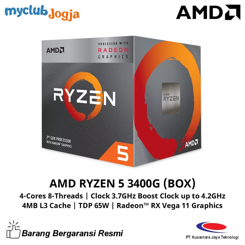 [Mall] CPU PROCESSOR AMD RYZEN 5 3400G BOX, AM4, 4-CORES 8-THREADS, 3.7GHZ UP TO 4.2GHZ, L3 CACHE 4 MB