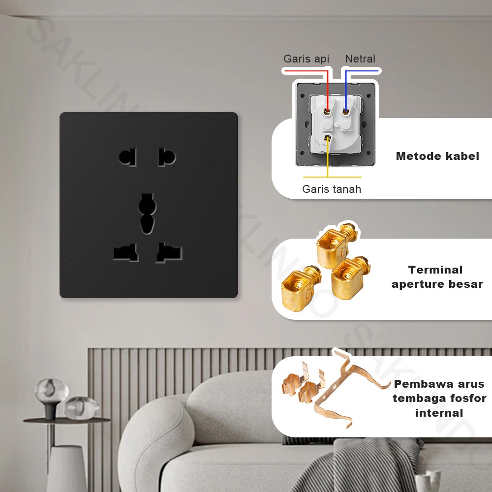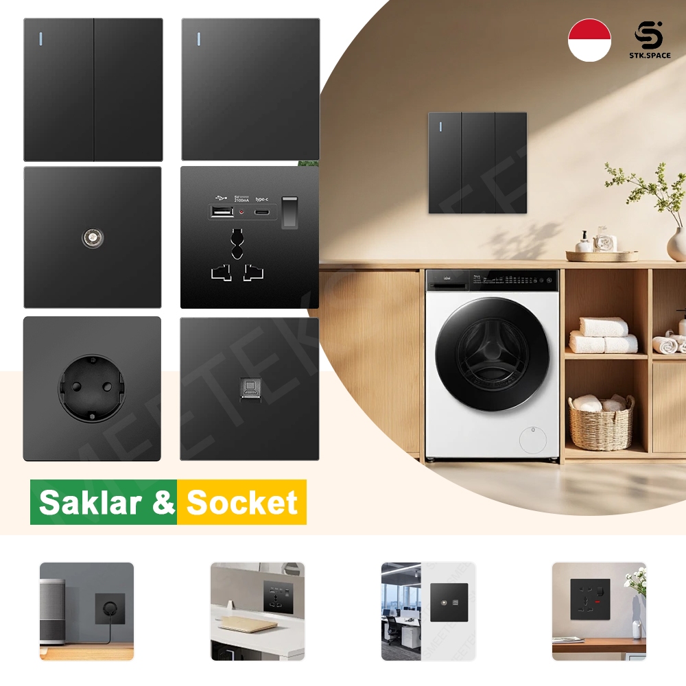 STK Stop Kontak Dinding Tempel Hitam Saklar On Off Lampu Stop Kontak Universal Socket USB Type C Saklar Dinding Aesthetic
