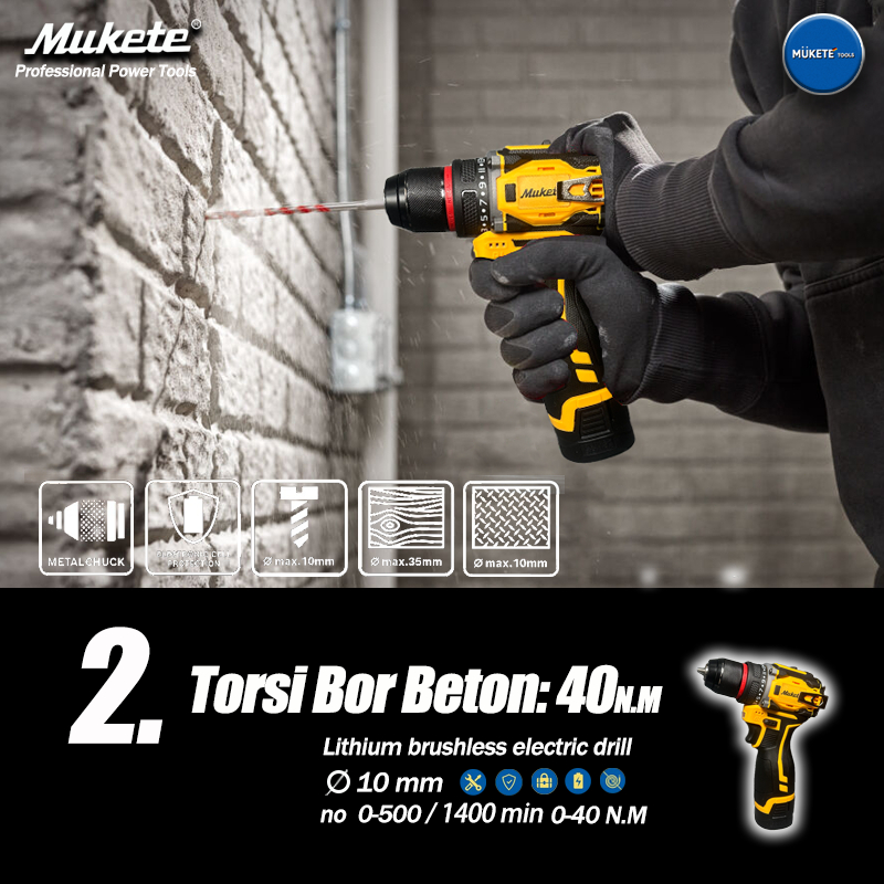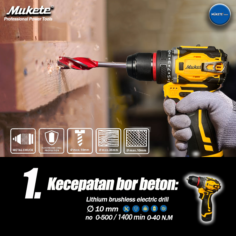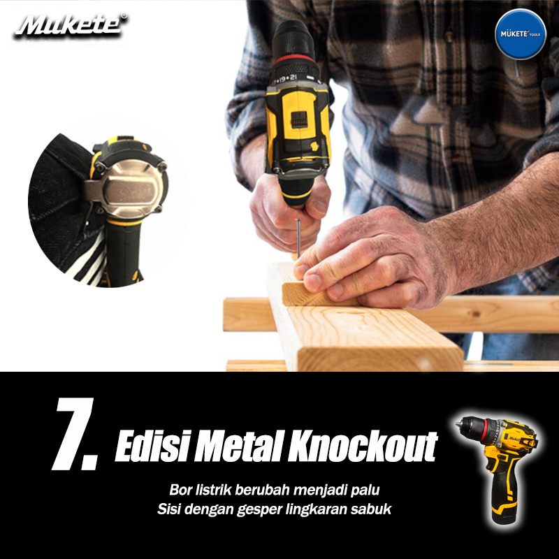 Mukete 18V bor brushless bor baterai bor cordless bor impact baterai Bor cas Mesin Bor Baterai Tangan Cordless Drill Bat