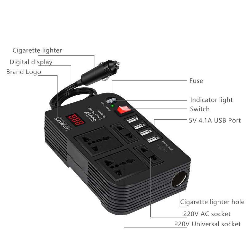 Power Inverter Mobil Ubah Arus DC 12V to AC 220V 2 Soket Listrik 4 USB
