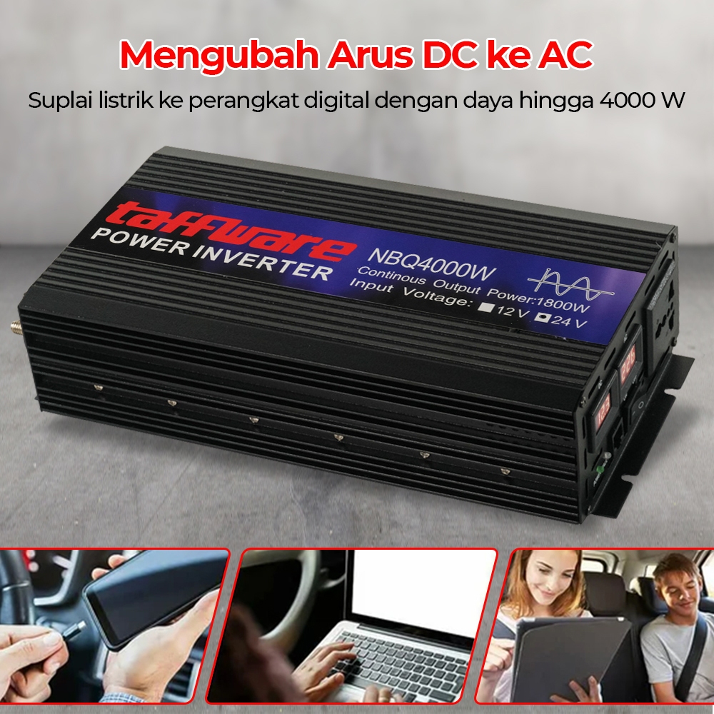 Taffware Power Inverter Mobil Pure Sine Wave DC 12V 24V to AC 220V 4000W - NBQ4000W